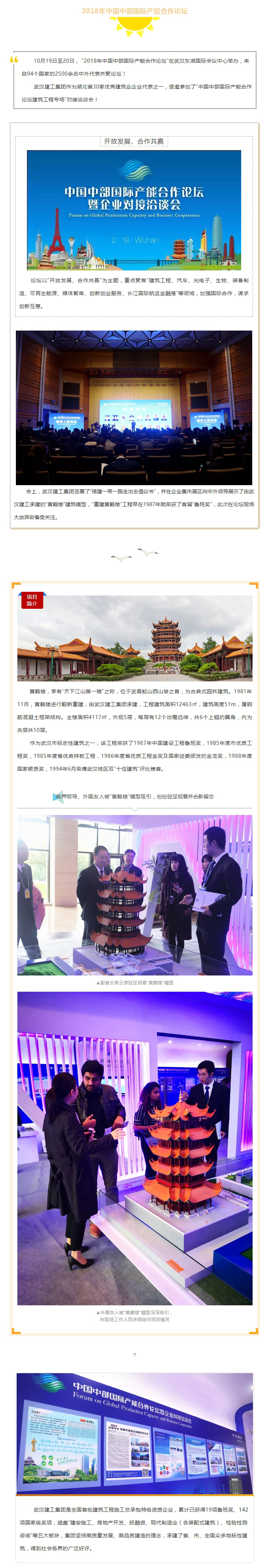 聚焦全球目光!武漢建工集團(tuán)“黃鶴樓”建筑模型在“2018年中國中部國際產(chǎn)能合作論壇”上大放異彩